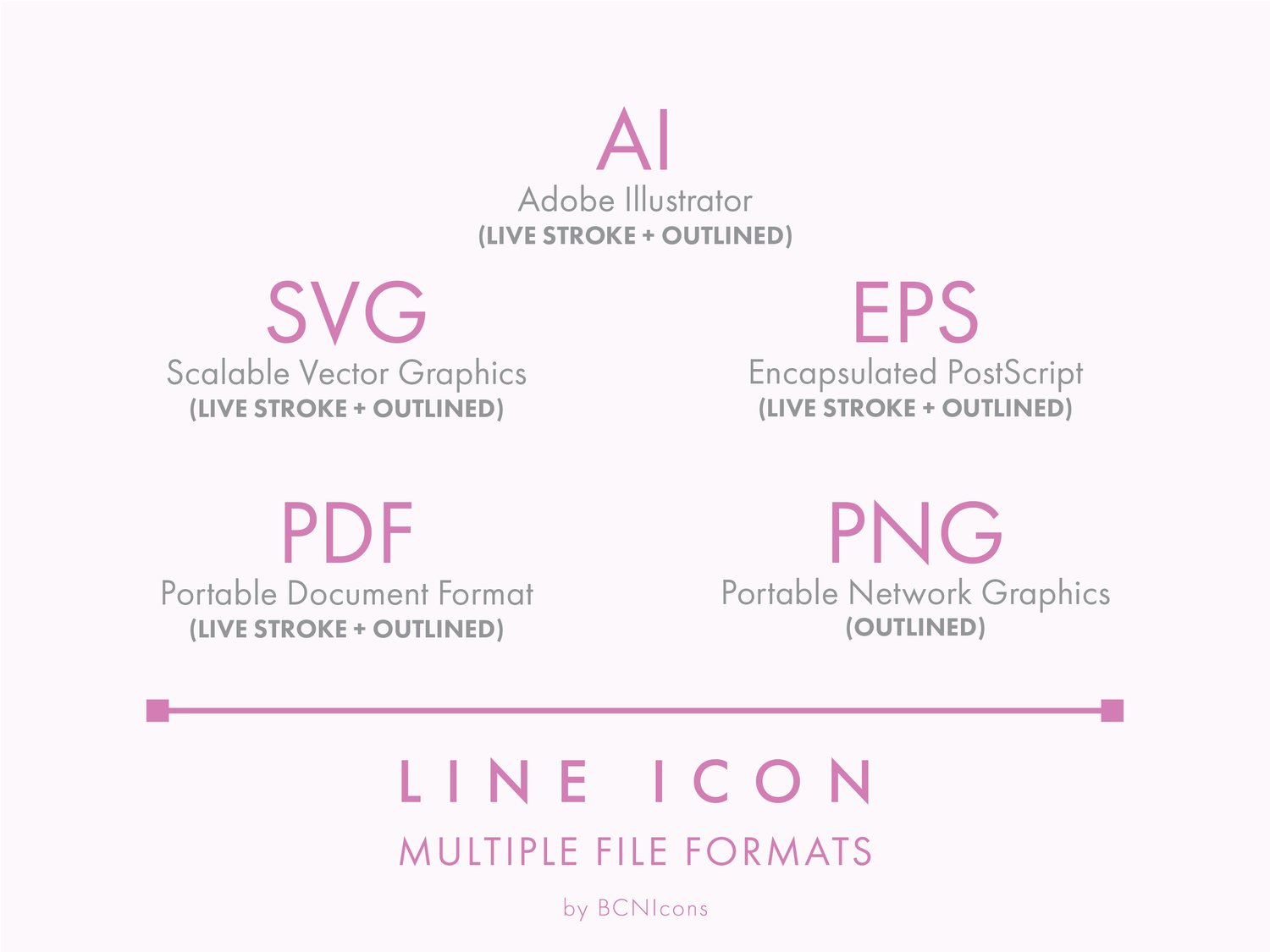 An instant download of a ZIP folder contains icons in default black color in the following formats: