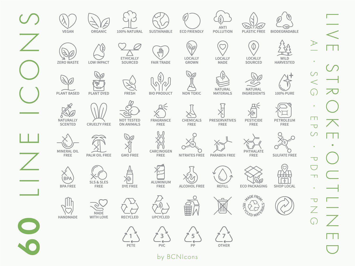 An instant download of a ZIP folder contains icons in default black color in the following formats:60 LIVE STROKE ICONS