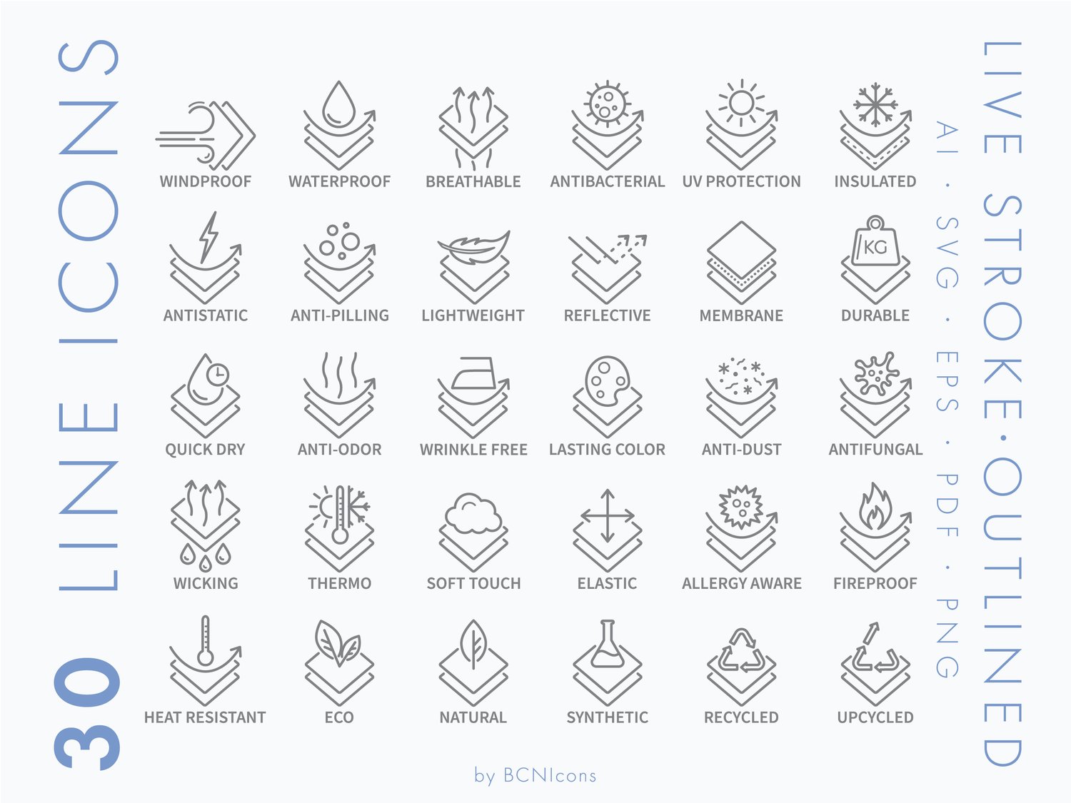 An instant download of a ZIP folder contains icons in default black color in the following formats:30 LIVE STROKE ICONS